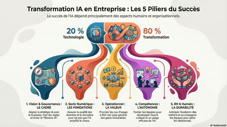 L’écart est croissant entre le potentiel technique de l’IA et la capacité réelle des entreprises à se transformer. Même si l’outil est déjà plus efficace pour de nombreuses tâches, ça ne veut pas dire que les entreprises sauront en tirer parti rapidement. L’inertie organisationnelle reste un frein majeur.