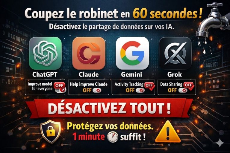 🚨 Vos conversations IA entraînent les modèles. Voici comment couper le robinet en 60 secondes ! Et si vous n’avez pas de politique claire, c’est votre responsabilité de dirigeant qui est engagée…